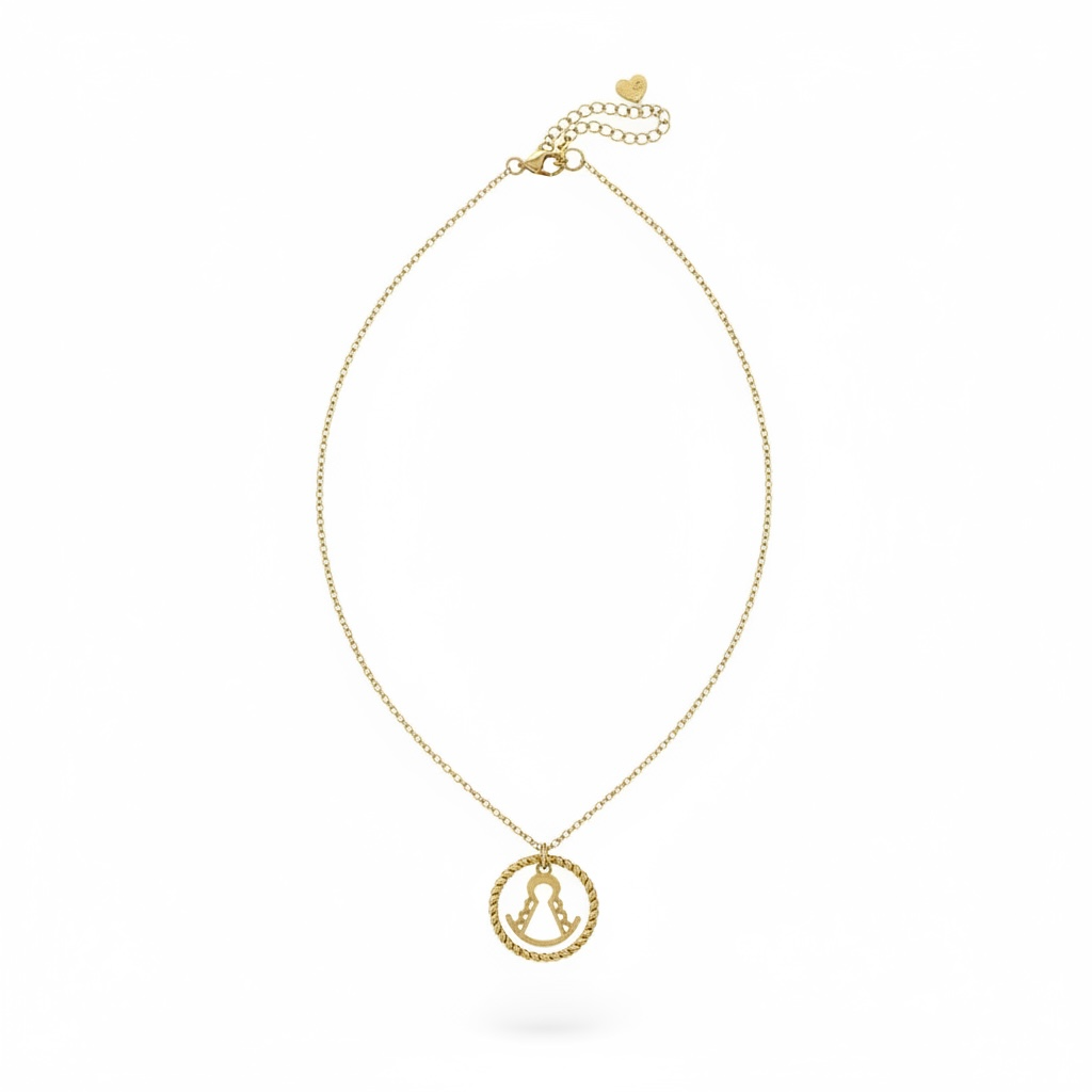Colgante redondo color dorado de la virgen del rocio